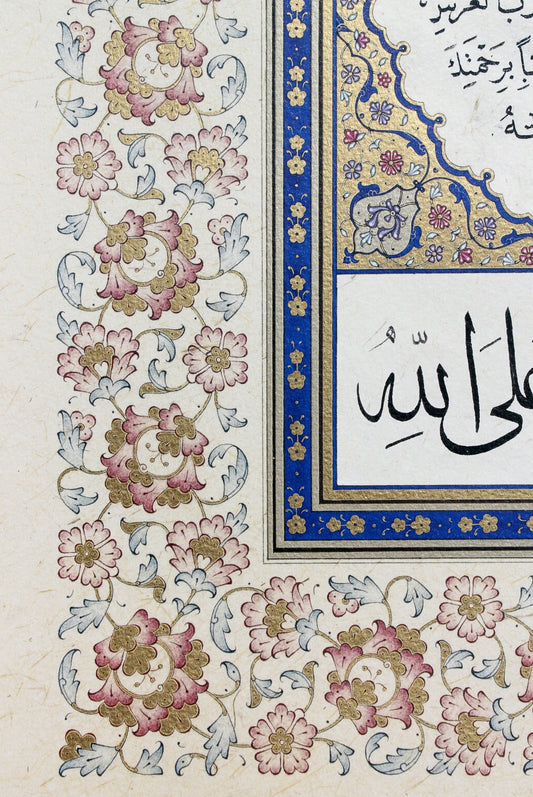 Arabic calligraphy by Ayten Tiryaki | Prayer for Blessings in Naskh and Thuluth | Ottoman-Islamic wall art | Beautifully illuminated