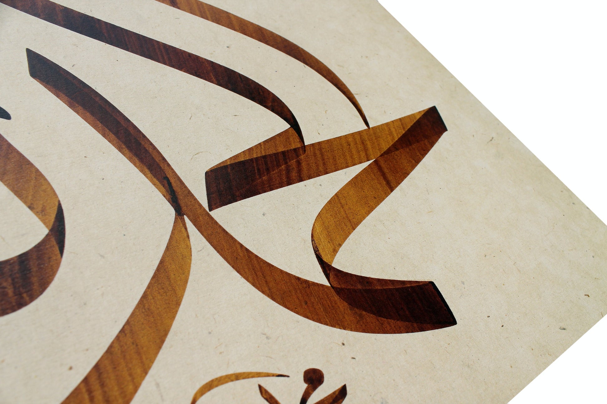 Alhamdulillah in Arabic calligraphy | Unique wood effect | Islamic art | By award-winning artist Mehmet Özçay | Limited Edition