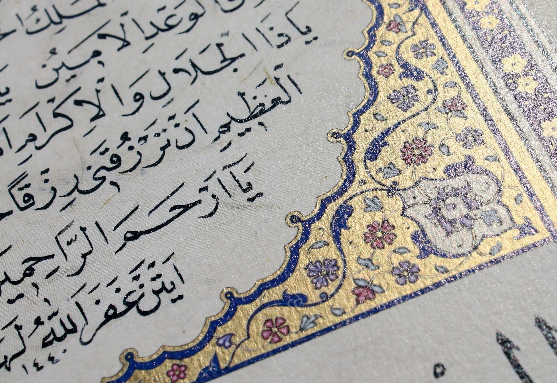 "O God, Lord of Jibra'il, Mika'il, Israfil, Azra'il, Ibrahim, Isma'il, Ishaq, Ya'qub, and [the One] who sends down blessings, and who revealed the Torah, Psalms, and the Quran. There is no power or might except with God, the Greatest and the most-High. There is no god but God, the Sovereign, the evident Truth, [and] Muhammad is God's messenger, the one truthful to his promise and the trustworthy. O Lord, O Lord, O Ever-living One, O Sustainer, O Possessor of all Glory and Bounty, I ask you, O Lord of the Mighty Throne, to bestow on me a halal and pure sustenance with your Mercy, o most Merciful One. [Written by Ayten Tiryaki, may God forgive her, 1440]."