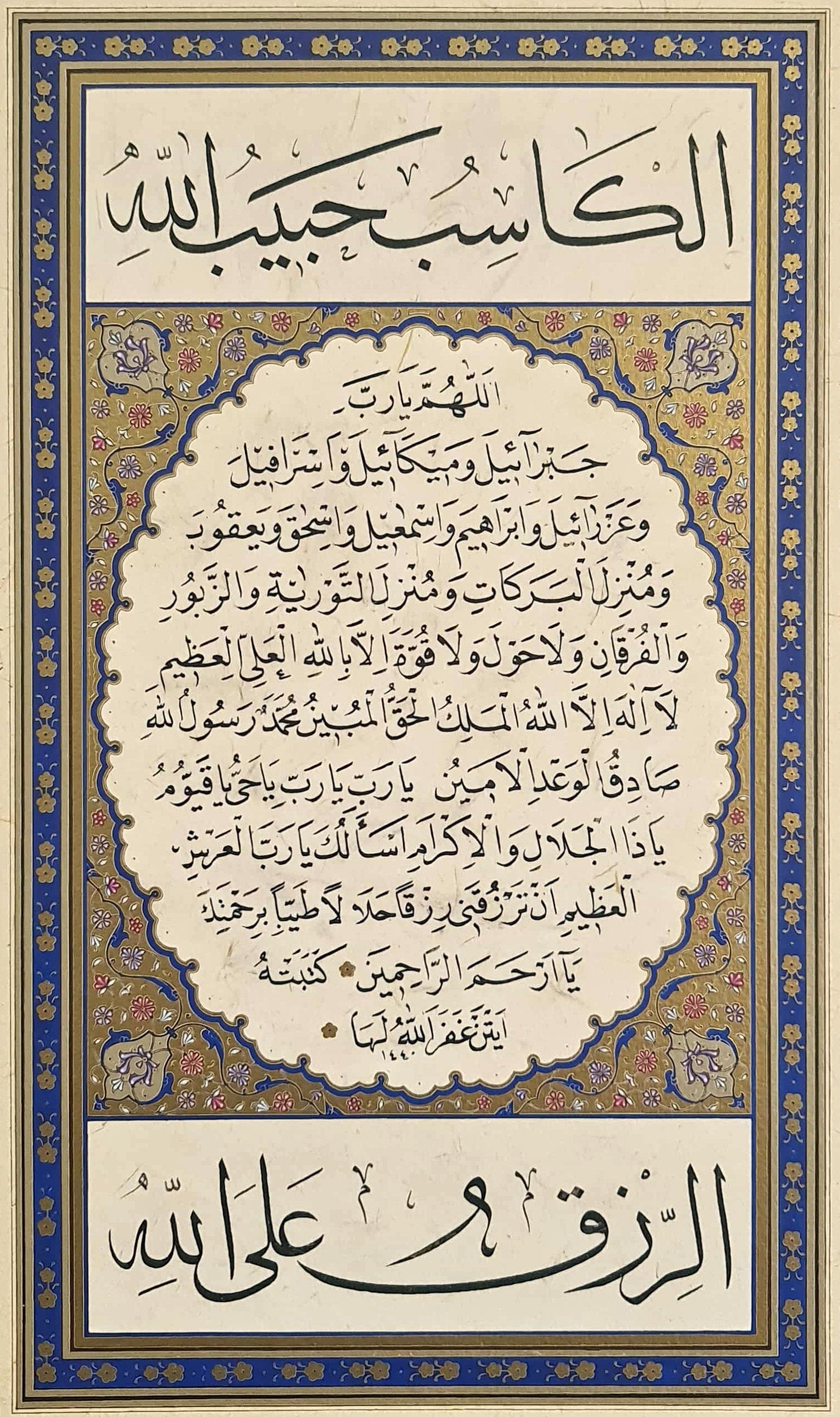 Arabic calligraphy by Ayten Tiryaki | Prayer for Blessings in Naskh and Thuluth | Ottoman-Islamic wall art | Beautifully illuminated