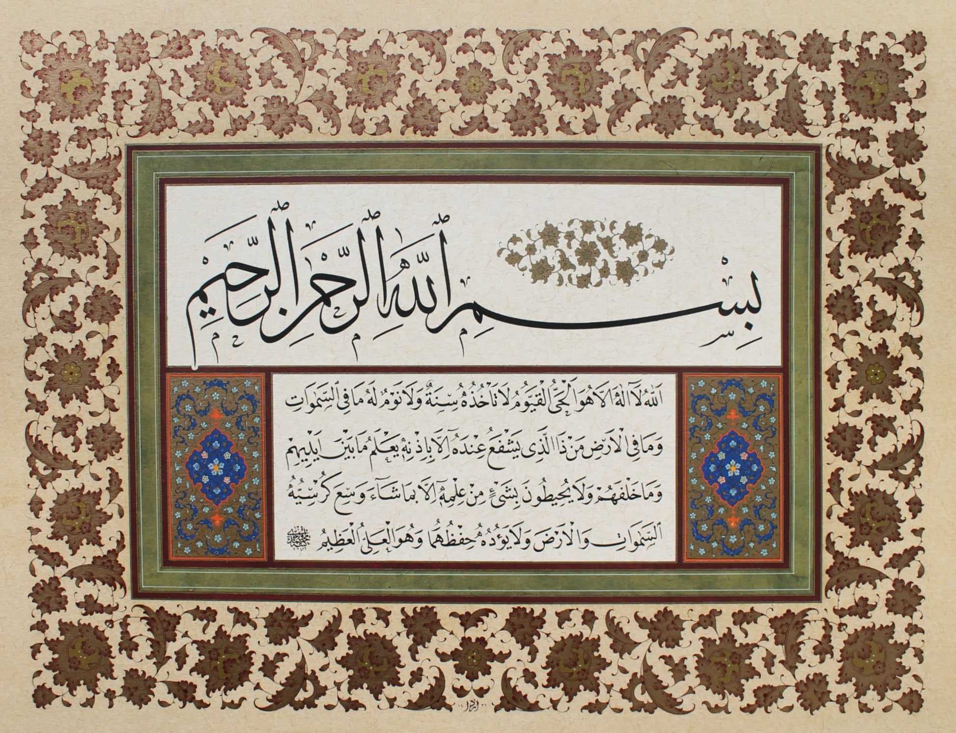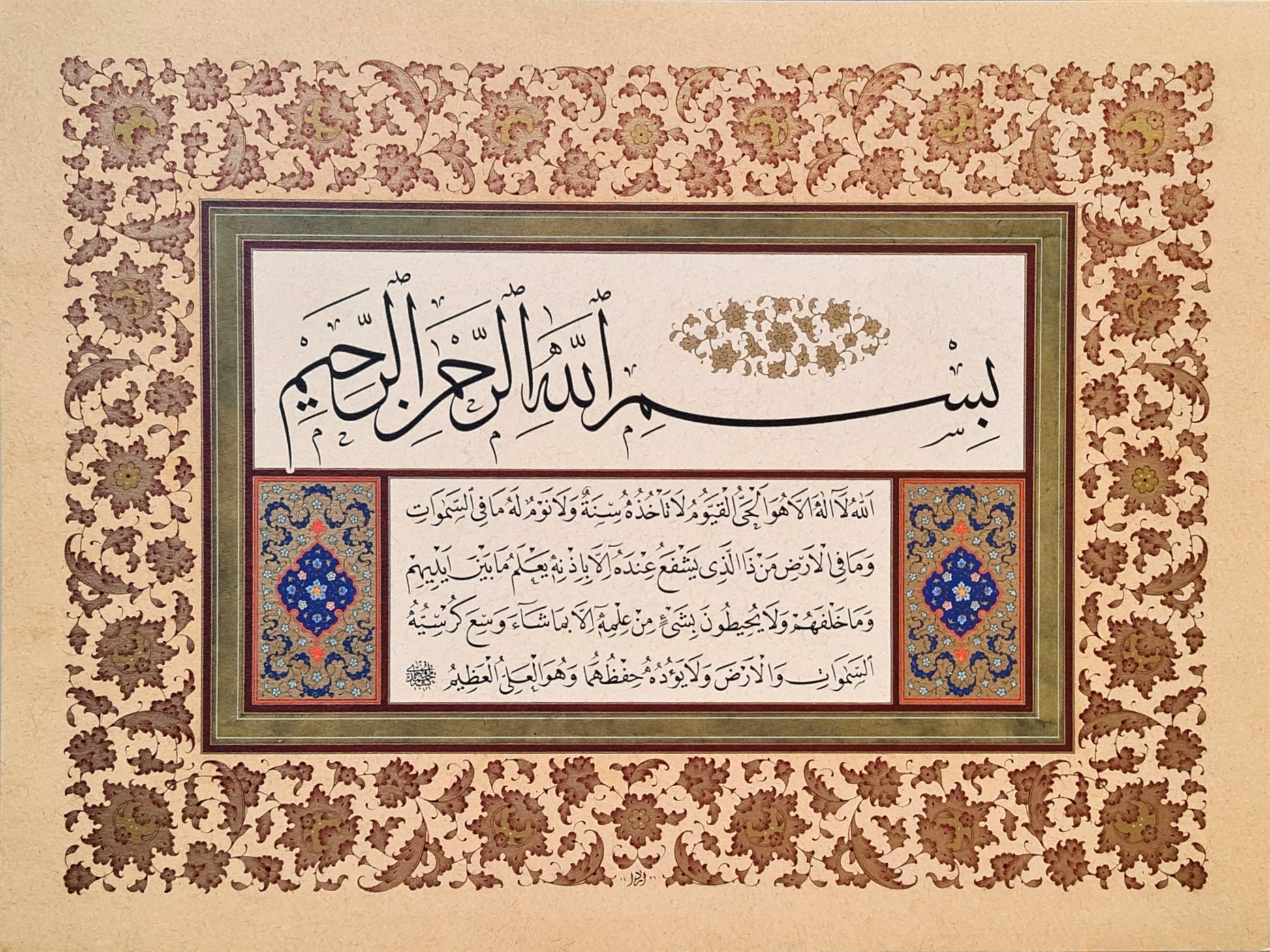 Ayatul-Kursi | Arabic calligraphy by Mehmet Özçay | Beautifully illuminated in Ottoman style | Limited edition | Islamic wall art