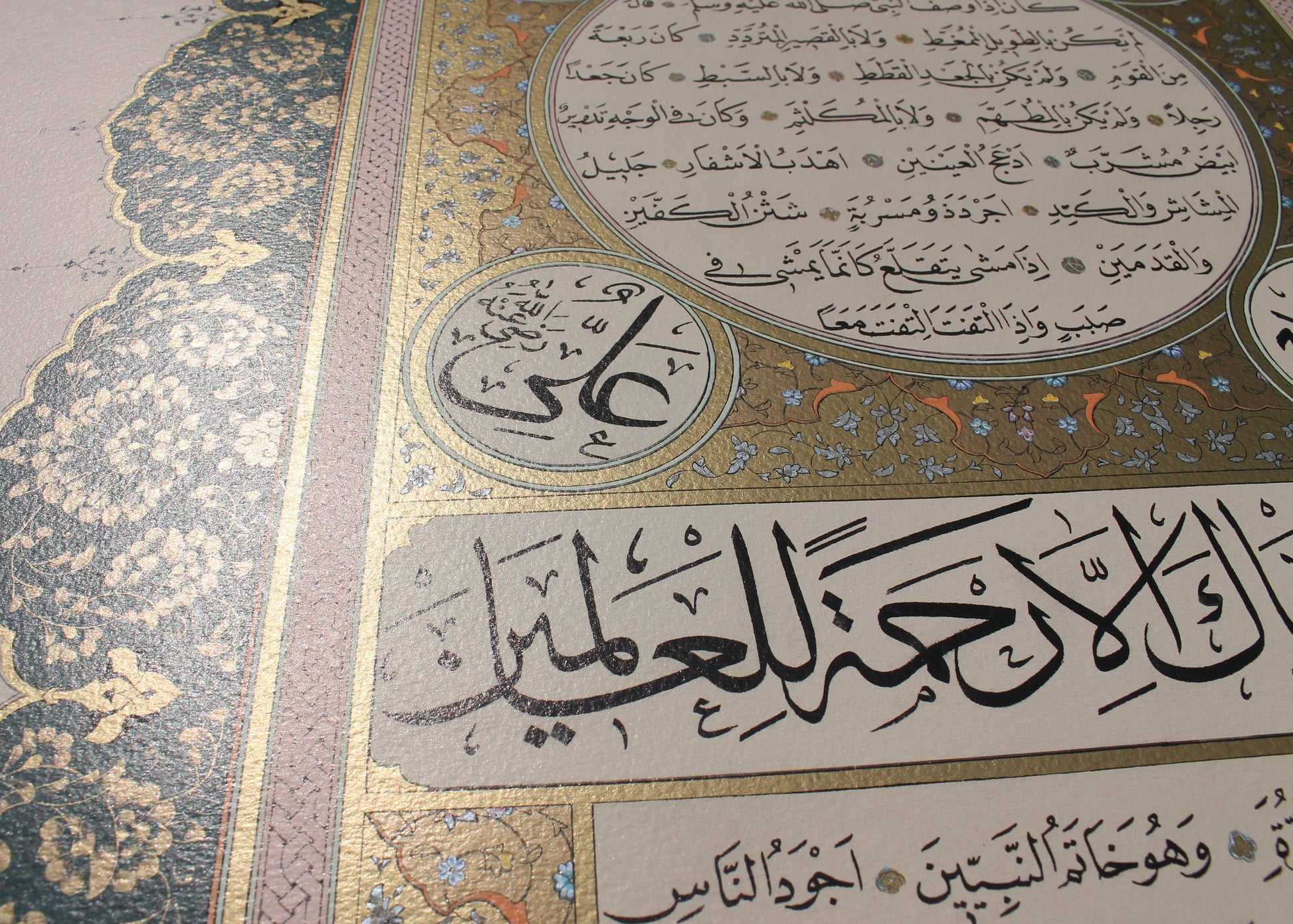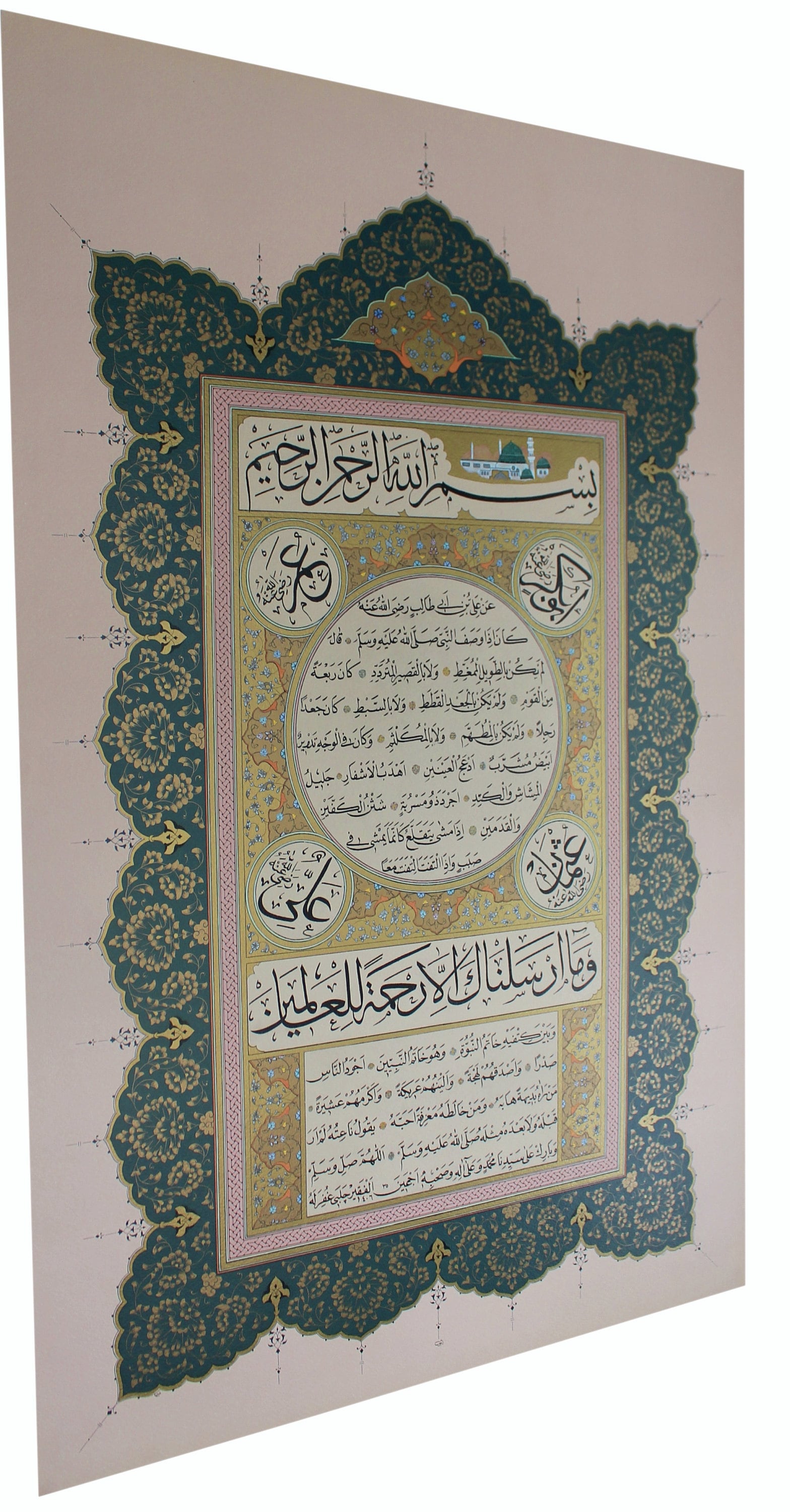This graceful piece features the hilye (verbal portrait) of the Prophet Muhammad ﷺ.